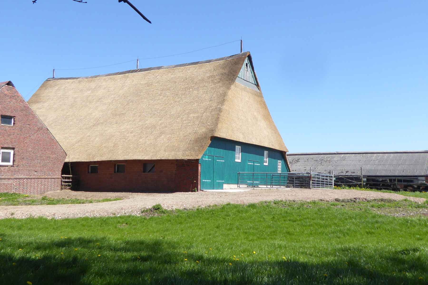 Das Reet wird bei uns auf dem Firmengelände in Hallen trocken gelagert und für die jeweilige Baustelle wird das am besten geeignete Material individuell herausgesucht.